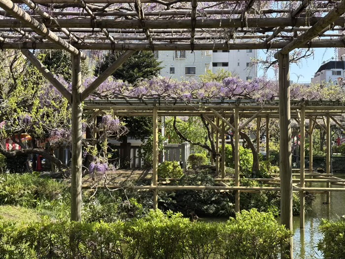 藤の花の開花状況や混雑状況については、亀戸天神社の公式サイトやInstagram、船橋屋の公式サイトで情報発信しています。